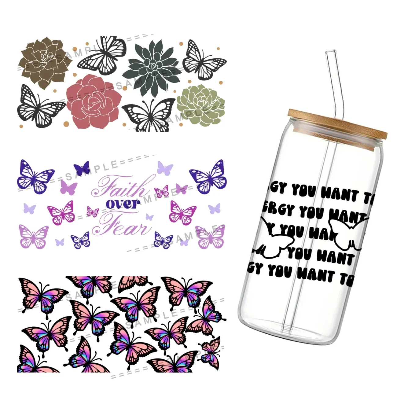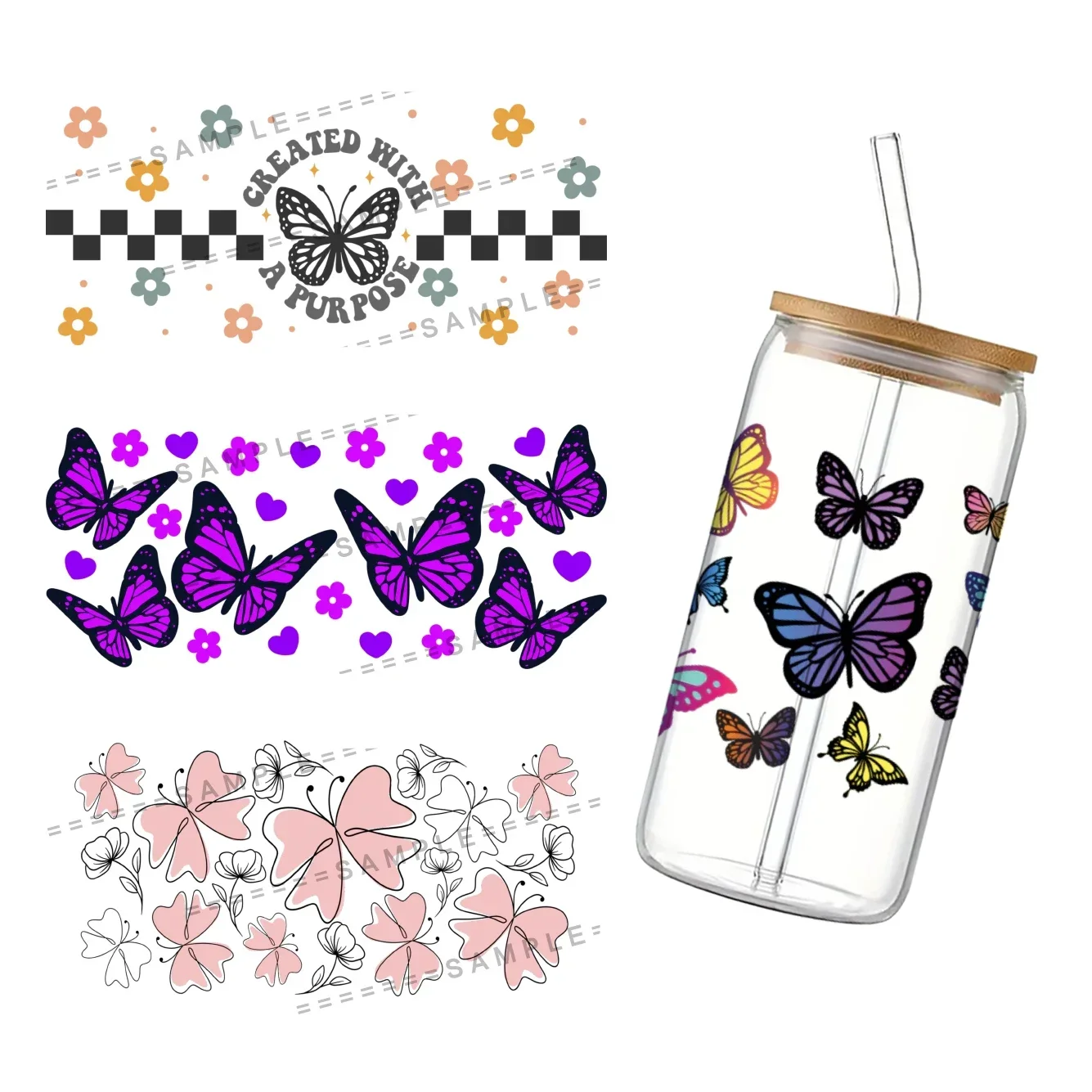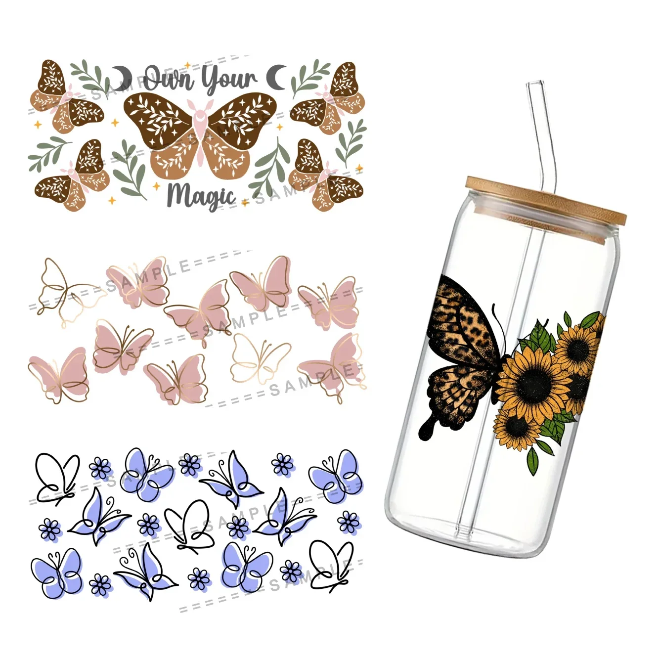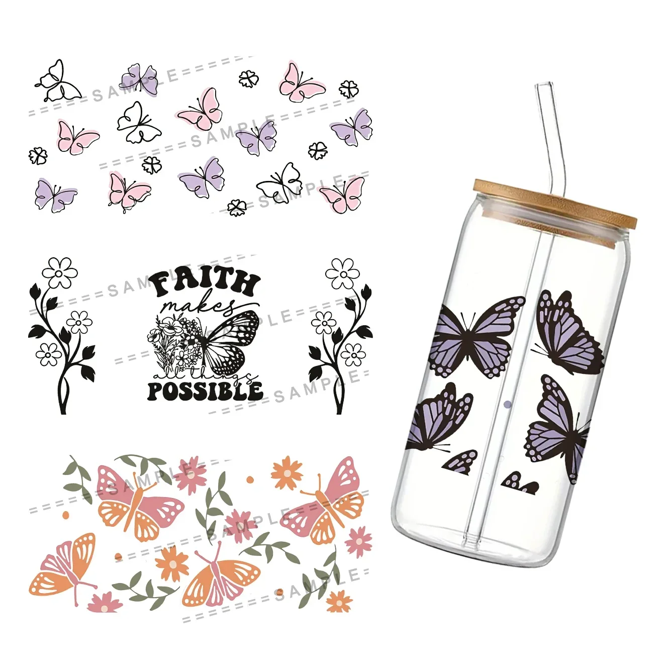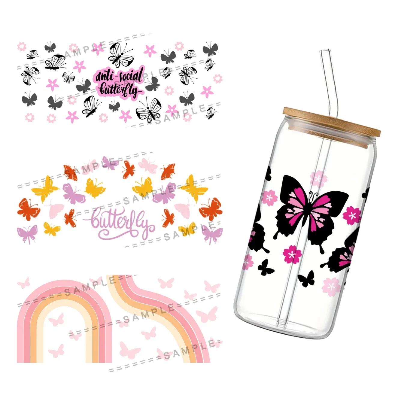 اليعسوب ل Libbey 16oz يمكن الزجاج UV DTF القهوة يمكن التفاف Libbey الزجاج التفاف الفراشة